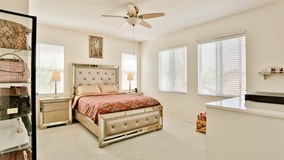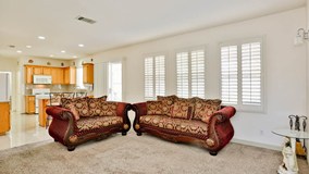 This turnkey home features 3 bedrooms, 2 bathrooms, and loft. Downstairs is carpet and tile floors with a large kitchen, formal dining room, and family room. Kitchen is open to family room with a small island for counter seating and a pantry. There are plantation shutters throughout the first floor and a sliding glass door that leads out to the extra large backyard with patio cover. Once upstairs, there is a loft and built-in desk with storage, eliminating the need for a separate office space. Master bedroom is very spacious, has his & her closets, and lots of natural light from the many windows. Located in the corner of the street, the backyard is pie-shaped and offers ample space for you to customize. Patio & cover run the length of the home and still leaves plenty of space for a pool, BBQ, seating, and much more! Quiet neighborhood close to shopping, recreation, and dining and absolutely no HOA!!!