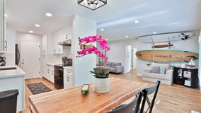 Welcome to "Towne Capri", your tropical lush landscaped gated community in the highly desirable Alamitos Beach! This tastefully updated GROUND LEVEL end-unit is 1 BLOCK from the BEACH and offers secured PARKING!! As you step through the entry, you will be immediately impressed with all of the upgrades that this home has to offer. You can see it all in the details! From the smart waterproof wood-like vinyl plank flooring, updated baseboards & doors, recessed LED lighting and newer designer paint. Dual pane windows and plantation shutters create a nice touch for privacy. Be prepared to be proud hosting and cooking your meals in this beautifully renovated kitchen with custom cabinetry paired with stunning quartz countertops with a full backsplash. The kitchen is complete with black stainless steel appliances and a powerful hood vent. The kitchen opens up to the dining area and a huge living room. The generous sized bedrooms have closets with built-ins and stylish ceiling fans. Both bathrooms have newer vanities. The main suite bath features a large shower with multiple showerheads. This unit is one of the few units with inside laundry in it’s own closet. The furnace was replaced in 2021 along with a Nest thermostat. This community is pet friendly! Take a break and unwind while you enjoy a nice barbecue in the common courtyard beneath the sparkling lights. This prime location is just minutes to Downtown Long Beach, Shoreline Village, The Pike, Yoga on the Bluff, Belmont Shores, and much more! Easy access to the freeways makes it a breeze for your commutes. Want to experience the ultimate beach lifestyle with a low HOA? This condo has everything you need!!!
