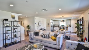 Located in the desirable Aspen Pointe community, this turn-key 4 bedroom home features a modern, spacious floor plan with open concept living. Kitchen with granite counters, sleek white cabinetry, stainless appliances and pantry overlooks the dining area and living room. One bedroom and a full bathroom are located downstairs (perfect for guests). Master bedroom with dual vanities and large walk-in closet. Built in 2019, you will also enjoy modern Smart Home features such as front door Smart lock, Smart garage door opener, Smart thermostats, SkyBell video doorbell, whole house wi-fi and more. Pool sized back yard and side yard large enough for RV and toys. Drought free landscaping in front yard. Convenient access to HWY 74, 215 FWY, shopping, dining, entertainment, parks, hiking trails, Menifee Lakes and more. No HOA.