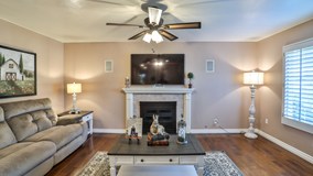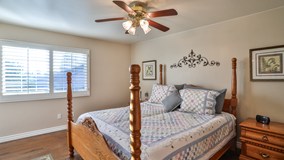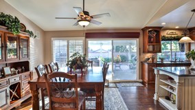 Welcome to this beautifully remodeled 3-bedroom, 2-bathroom home nestled in a serene Via Verde cul-de-sac. Boasting 1,420 sq ft of thoughtfully designed living space, this home offers a seamless open floor plan filled with modern upgrades and stylish finishes throughout. The gourmet kitchen is a chef’s dream, featuring rich Cherrywood-faced cabinets with walnut interiors, soft-close doors and drawers, granite countertops, pull-out shelving, and sleek stainless steel appliances. A custom built-in entertainment center, matching the kitchen cabinetry, adds both function and flair to the living area. Both bathrooms have been tastefully remodeled, and the home is outfitted with engineered hardwood flooring, double-paned windows, a newer sliding door, and plantation shutters for added elegance and energy efficiency. Major system upgrades include a newer A/C, furnace, thermostatic attic fan, upgraded air ducts, and a 200-amp electrical panel. Additional highlights include fresh exterior paint, newer exterior doors and raised-panel interior doors with updated hardware. Interior walls upgraded with R19 insulation. Upgraded R30 ceiling insulation & foil radiant insulation under roof system. Newer Cloplay garage door/Liftmaster Wireless Opener with camera. Owned soft water system. Step outside to enjoy the professionally landscaped front and back yards, complete with LED lighting in the front for a welcoming ambiance. Cal Spa Hot Tub with wireless amenities. This home truly has too many upgrades to list – a must-see!
