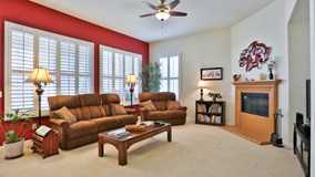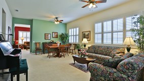 One of the largest one-story homes in Eastvale. Superb layout. Rare feature: private guest suite includes sitting room and bathroom, and is ideal for guests or family member(s) living at home. Master bedroom has massive 13’ x 8’ walk-in closet. Energy-saving and beautiful plantation shutters throughout. Kinetico water purification and softener system installed. Ten-foot ceilings give expansive impression. Ceiling fans throughout. Roomy bedrooms have mirrored closet doors. Kitchen features granite counter tops and generous cupboard space, and a large walk-in pantry. The laundry room has cupboards and a deep sink. Ten-year smoke detectors are provided throughout the house, along with carbon monoxide detector. The insulation is attached to the roof, not the floor of the attic, providing greater cooling efficiency. The house features high quality AC/Heating duct work. The garage door is insulated, and the garage features finished drywall and baseboard, two overhead storage racks, and cherry-colored cabinets and workbench system. Outside there is a concrete walkway on each side and rear of the house, with generous concrete pads at each corner of the backyard. The backyard is equipped with five electrical stations, each with multiple outlets. Back porch wired for ceiling fan. An 8’ x 10’ storage shed is erected on a concrete pad at the side of the house. The house has sprinkler system for all lawn segments, and a drainage system for the lawns at the back and sides of the house as well as the concrete pads at the rear of the house. The house is within easy walking distance of the Riverwalk, a first-rate walking/jogging path (pavement and composite side by side), that leads to a ten-station exercise park, a disc golf course, and another park with pavilion and kids equipment. The brand new Silver Lakes athletic complex in Norco is nearby. Because of the location of the cul-de-sac there is no through-traffic. Don’t miss seeing this marvelous home!