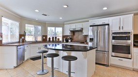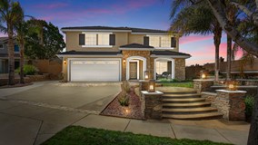 Located on a cul-de-sac this pool home w/4 bedroom, 4 bathroom, plus bonus room home has fantastic amenities starting w/the custom curb appeal. Enter into the spacious tiled entryway to the large formal living & dining rooms. From the dining room your led into the butlers pantry & kitchen which features a huge walk in pantry, stainless steel appliances, granite countertops & backsplash accented by white cabinets & bronze hardware + huge kitchen island w/breakfast bar in black granite. The kitchen opens to the large family room w/recessed lighting, beautiful dark wood looking tile floors & cozy fireplace. Upstairs the large bonus room is used as a theatre room & features views of the mountains & hills. The master bedroom is HUGE w/views & featuring an equally large retreat complete w/fireplace. The master bathroom has 2 separate vanities, jetted tub, shower, private toilet & massive closet w/custom cabinetry. The remaining 3 bedrooms are all spacious w/large closets. 2 bedrooms share the hall bathroom which features a custom accent wall, while the 3rd bedroom features a private full bathroom. The backyard is your private oasis w/covered aluminum pergola, large patio space & side yard, pool & spa w/waterfall & concreted area for lounging + lampposts. Other notable amenities include raised baseboards & crown molding throughout, lighted ceiling fan in every bedroom, dual A C units for upstairs & downstairs, newer tile floors & carpet (approx. 1yr), & wired for an ADT alarm.