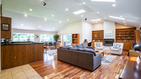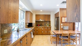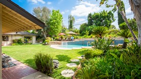 Rare 6 bedroom, 4 bath single story ranch style home on a huge lot adjacent to Friendly Hills with a park-like backyard and custom swimming pool and spa, perfect for entertaining family and friends. Step inside to the open concept great room with vaulted ceilings, multiple seating and dining areas, custom built-in bar with plenty of storage, skylights and a fireplace. Fall in love with the second expanded living room featuring a cozy fireplace and the retro kitchen with Wolf cooktop. . The primary bedroom and bath offer extra storage and built in desk with sliding doors opening to lovely backyard views. All bedrooms feature extra closet space. The 6th bedroom and en-suite bath is located in a separate wing, ideal for guest quarters. Exterior features include circular driveway, finished garage, fruit trees and automatic irrigation.