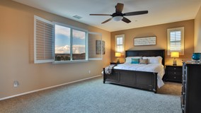 You will find amazing views from this PRIVATE, GATED Serrano Ridge Community in highly sought Sycamore Creek Estates in Corona. This is the Tri-Pointe Homes Plan 4 Model Home! This 4 bedroom, 3 bath Spanish style home is practically new with lots of seller upgrades. The downstairs living area opens up to the large extended kitchen and good size kitchen island. The warm shaker cabinets and stainless appliances were just a few of the upgrades from the original builder. The kitchen also features a large pantry and butler area as you enter from the garage. You have tremendous views from the dining room and living room area with access to the backyard off of the living room. The backyard is low maintenance with concrete and Synthetic Grass. Downstairs you have a full guest bathroom with shower. Upstairs you have a loft area, upstairs laundry room with upgraded cabinets and hanging space. Down the hall from the loft, there are two upstairs guest rooms with upgraded ceiling fans. These rooms share a guest bathroom that has a dual vanity and shower tub combo. The master bedroom is like a retreat as it is away from the other rooms. It also has great views and 2 large walk-in closets with an ensuite bath, soaking tub and separate shower. The two car garage has one garage extended with extra space for storage. The neighborhood has its own playground in walking distance, access to community pool, tennis, fitness center, sports park, and nature reserve!