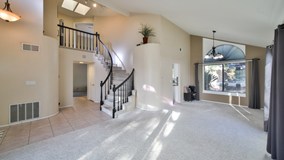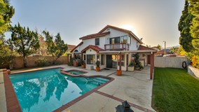 Check out this gorgeous North Rancho pool home in one of the best school districts!! You will be impressed with how private the back yard is, featuring block walls all the way around and a raised patio area to lounge adjacent to the pool/spa. A true entertainers paradise with an oversized rear yard, grass area, built in BBQ and lots of covered patio space. The side yard has an area to work on a car with spotlights and built in storage complete with tile shingles. The interior boasts volume ceilings with lots of light/color scheme. Spacious living/dining room combo, kitchen with white cabinetry and granite countertops. Stainless Whirlpool appliances, and large breakfast nook for dining. The family room offers a feature wall with stacked stone and surround sound, CAT6 wiring and gas fireplace. Second level offers large landing area with skylights, master suite with private patio and 2 closets. The hall bath has been remodeled and offers newer sink, cabinet and faucet, updated tile flooring. Secondary bedrooms are a good size, two of them with mirrored wardrobe and ceiling fans. The fourth bedroom is currently being used as an office, closet doors have been removed. Additional upgrades include a whole house fan, newer water heater, fully drywalled 3 car garage with tons of storage cabinets and insulated roll up doors. Garage also offers a drop down storage ladder for additional attic storage. Plumeria tree, 2 lemon trees and an orange tree. Located minutes from the 210 frwy and another 5 minutes to the 15 freeway. Enjoy Victoria Gardens shopping and dining - a 5 minute drive away. Award winning school district for the kids... what more could you ask for? See this home today!