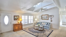 Gorgeous Light and Bright Turnkey home located in the prestigious gated 55 + community, Rancho Carlsbad Estates. This home boasts 2 bedrooms and a private office with a french door that could easily be converted into a 3rd bedroom! This home is steps from the river and is flanked by lush green belts on both sides of the home with just a short walk! The home has custom shutters on all windows and several sky lights to let in all of that lovely coastal sunshine! The airy eat in kitchen has newer white cabinets and an upgraded appliance package that spills into the open living room with a custom wall unit offering extra storage. There is a long porch perfect for watching the sunset and a separate patio area for that California outdoor living! The master bathroom is equipped with an extra large shower and a generous walk in closet! There is also a formal dining room with plenty of room for large gatherings! The front yard is complete with low maintenance shrubs that accent the beautiful brick detail! To make this home complete, there is a covered car port for 2 cars and locked exterior storage shed! The Rancho Carlsbad Estates community has luscious landscaping, a sparkling lake, creeks, a dog park, a library, a pool area with a jacuzzi and so much more! All of this and you own the land! No rental space fees and low HOA!