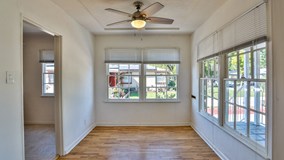 Truly charming mid-century 3 bed, 2 bath home on a quiet tree lined street just min. from parks & shopping. The professionally landscaped front yard features a large tree as it's focal point offering shade & beautifully accented w/a raised planter bed in addition to the tall palm trees & fresh mulch. From the quaint front porch step into the spacious family room. The large space features original wood floors, lots of natural light from large windows, new lighted ceiling fan for the warm days & a brick faced fireplace for the cool nights. The formal dining room is just off the kitchen & living rooms & also features lots of natural light, new ceiling fan & wood floors. The kitchen has been updated w/granite counter tops & backsplash & tile floors as well as an eating area nook. The laundry room is conveniently located inside, just off the kitchen. The hallway leads to the master bedroom that features dual closets & lighted ceiling fan while the master bathroom features dual sinks, privacy toilet & shower & has direct access to the backyard. The front bedroom is spacious, while the 3rd bedroom is large & features direct access to the hallway, kitchen & backyard. The hall bathroom has a new flooring, shower & tub combo. The backyard is large w/covered patio, brick patio under the shade of a mature tree, as well as fully fenced & private spa w/custom decking. The long driveway leads to a 2 car garage set back from the street. Other notables: new carpet, new faucets, fresh paint.