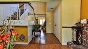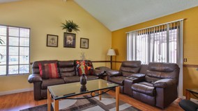 Charming two-story condo in the Creekside Community in Ontario, CA, with vaulted ceilings upon entry of the home. Features 3 BR, 2-1/2 BA, formal living room with fireplace, den/office, large kitchen with breakfast bar, granite countertops, tile flooring, sunny dining area with sliding doors leading to large covered patio, perfect for BBQ's and entertaining. Community amenities include swimming pool, tennis courts, grassy common areas, and plenty of guest parking. Low HOA's is a plus!