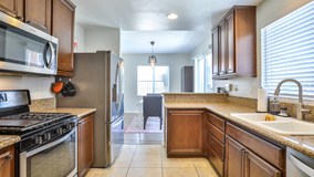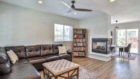 Located in a private gated community of Grand Canal, this beautiful townhome features 3 bedrooms and 2.5 baths. Spacious living room features a dual fireplace connecting the dining room. The kitchen has granite countertops, stainless steel sink and appliances. The dining room opens to the patio area. The master bedroom comes with a walk in in closet, ceiling fan, en suite bath and a private balcony that overlooks the garden. Laminate flooring throughout with tile floorings in kitchen and bathrooms. This unit also comes with a two car attached garage. The dining room opens to a private, gated yard and landscaped patio area. This property is centrally located with easy access to the 215 Freeway and minutes away from Loma Linda University and UC Riverside.