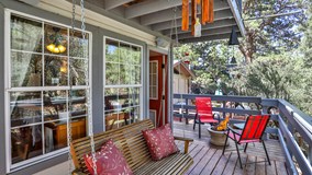 Welcome to this cozy home nestled in the heart of Sugarloaf, a residential community area less than a mile south of Big Bear City. This beautiful property is steps away from trails of the National Forest, offering the perfect balance between big bear city life and the peacefulness of nature. At first sight, you will be captivated by its charming style. The home features a nice sized living room, complete with a cozy fireplace and large windows inviting lots of natural light. Downstairs half bathroom is located in the hallway leading to kitchen. Kitchen is bright and fully integrated with new appliances, plenty of cabinets and countertop space. The kitchen has access to the exterior wrap around porch, perfect for sitting by the firepit, grilling, enjoying a cozy night in the jacuzzi or sitting and simply absorbing the majestic forest views this home has to offer. Upstairs consists of 2 vast sized bedrooms, full bathroom and laundry area. This meticulously maintained property is being sold fully furnished and also includes, Jacuzzi, oversized shed, reverse osmosis system, and offers plenty of under home storage.