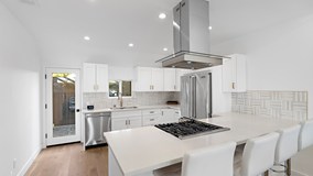 Beautifully remodeled sweet and charming home, directly adjacent to Beverly Hills and all of the world famous restaurants and shops. Pitched roof ceilings creates a warm, open space, with hardwood floors throughout, Viking stainless steel appliances, and a private closed garage. Each bathroom has gorgeous marble accent, alluring to the modern classic lifestyle this home embodies. The lovely backyard space, accessible from the primary bedroom and kitchen, has alfresco dining space which completes the home. The home highlights smart home features built in and synced with Google Home, such as a Google doorbell, nest thermostat, Smart lights, and speaker system. This home simply creates a natural relaxing oasis.