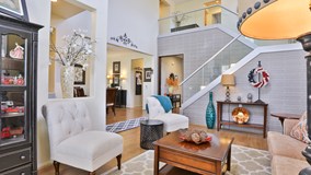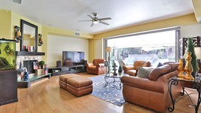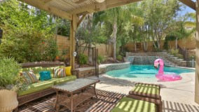 Luxurious pool home home w/5 beds, 4 baths, located at the end of a cul-de-sac w/palm tree lined driveway & lighted walkway to the front door. Step into the front entry to high ceilings into the formal living room w/plantation shutters found throughout the home. The dining room has a butlers pantry conveniently connecting the kitchen & informal eating area. The kitchen opens to the living spaces & features a large breakfast bar, walk in pantry, stainless steel appliances, & beautiful countertops & backsplash. The family room has a fireplace & entertainment niche. The family room & dining area both feature panoramic sliding glass doors w/automatic shade & retractable shade outside the family room. A downstairs bedroom w/full bathroom, as well a work out room complete the downstairs. The stairs w/glass & metal railing lead to the large master bedroom w/retreat & luxurious master bathroom featuring dual sinks, vanity, large soaking tub & shower w/rainshower fixture & tiled accent wall. The 3rd bedroom is spacious w/massive closet & private bathroom. The remaining 2 bedrooms are spacious & share a jack-n-jill bathroom. Also upstairs is the laundry room w/storage & sink. Relax in your California room featuring 3 lighted ceiling fans, recessed lights, glass louvered sliding balcony doors or in the 4 person sauna. The pool features a sun shelf, slate rock water feature, lighted steps to the spa & glass security fence.