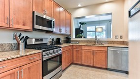 Fantastic home in the heart of Aliso Viejo! This beautiful home has been tastefully updated with a sophisticated kitchen featuring neutral toned shaker style cabinets, granite counters, and stainless steel appliances. The open floor plan has tile flooring on the first level, engineered wood floors on the 2nd level and the stairs for an easy low maintenance lifestyle. All three bedrooms are on the second level, the Master has a large mirrored wardrobe, dual vanities and an updated walk-in shower. The second bedroom is large and features plenty of sun-lit windows. The third bedroom can be used as an office/den or bedroom, currently there are built-ins on one wall without a closet. The yard is low maintenance with pavers and has plenty of space for a BBQ and dining area, a back gate leads to the green belt area just behind the property which is perfect for pets. This prime location is within walking distance to Town Center with Theaters, restaurants, shopping and groceries. Enjoy being close to the community pool, Springdale park, Woodfield park with a great playground and picnic areas for entertaining. Complex was re-piped with PEX piping a few years ago. This home is on a quiet corner without heavy traffic in front, great for kids and plenty of guest parking.