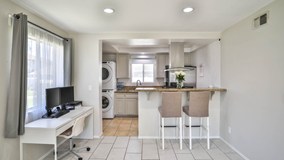 Ready to move into single-level Bouquet Village condo with No Mello Roos and no immediate neighbors! This beautiful 2-bedroom, 1 bathroom home is situated in a quiet location with no immediate neighbors on either side of the property. The unique property features an ample private patio, a great open floor plan, new floors, a new kitchen with custom cabinets, new granite counters tops, a new sink, new garbage disposal, new recessed lighting in the living room, upgraded bathroom cabinets and finishes, newer appliances, and best of all lots of light and a very nice and cozy like home feeling. The Bouquet Village Community Amenities include Pool, Playground, and Basketball Courts. Located near Award Winning Schools and within walking distance to shopping and delicious restaurants.