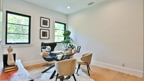 This is the one you have been waiting for! Situated in the heart of Sherman Oaks is this exquisite 5 bedroom, 5.5 bathroom Contemporary Masterpiece! Built in 2019 with over 3,800 sqft of living space, this bright and elegant one story home features beautiful curb appeal, open floor plan, 10' ceilings throughout, and spacious suite bedrooms. Equipped with Control 4 Smart Home System, wine display and custom finishes throughout. The gourmet chef’s kitchen features Vadara Calacatta countertops, center island breakfast bar, top of the line appliances and custom cabinets. Luxury and sophistication describe this dream home! WOW! The luxurious master suite with vaulted ceilings, two huge walk-in-closets and a resort-like master bath with dual sinks, a freestanding tub and an oversize shower is breathtaking! The spacious family room boasts a modern fireplace and includes a wall of 20’ glass pocket doors that open to an entertainer’s backyard featuring a sparkling salt system pool, spa, built-in BBQ kitchen and a covered patio great for outdoor lounging or dining. Other features include indoor/outdoor surround sound system, 8 HD security cameras, alarm system, LED lighting and more! This one story custom built home is 1-OF-A-KIND!