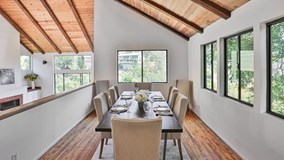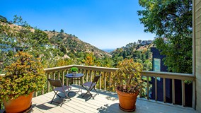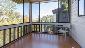 Perched on an 11,000+ SF lot in the illustrious Hollywood Hills, this 3-bed, 2.5-bath architectural beauty is filled with natural light and has sweeping 180-degree views. The unassuming entry leads up to the impressive great room with soaring beamed ceiling, towering fireplace, floor-to-ceiling windows, skylights and spacious deck highlighting the incredible view. The main level also features an open dining room, kitchen with greenhouse window & breakfast nook, 2 spacious bedrooms (one of which is currently being used as an office), a ¾ bath and a separate convenient ½ bath. The lower level includes a large laundry room, storage closet, and the pièce de résistance: a large master suite with seating area, second fireplace, private sunroom, walk-in closet, vanity, and bath with separate shower stall & tub. There's also an attached 2-car garage, additional driveway parking, and a bonus space with a separate entrance. Welcome home!
