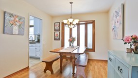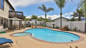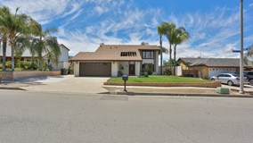 Lovingly maintained pool & spa home w/4 beds, 3 baths on a spacious lot! The manicured front lawn & brick pathway to the front porch seating area invites you into the formal living room w/laminate wood flooring, stained raised baseboards & picture frame bay window w/plantation shutters. Enjoy the relaxing reflections of the water from the picture frame bay window in the dining room located just off the galley style kitchen. The kitchen has been updated w/granite countertops, stainless steel appliances & hardware. The family room features tile flooring, fireplace w/stone hearth & built in shelving. The half bath & laundry room w/direct garage access complete the downstairs space. Head upstairs to the spacious master bedroom & bathroom w/vaulted ceilings, lighted ceiling fan, dual closets & french doors leading to your private balcony w/stunning views of the mountains. The remaining 3 bedrooms are spacious & feature vaulted ceilings, 2 feature mirrored closet doors & all have new carpet. This summertime oasis is thoughtfully designed w/children in mind w/a gated covered patio & spacious side yard featuring artificial grass to keep little ones safe around the water. The stained concrete raised patio & lush palm trees invite you to stay a while. The side yard parking is spacious enough for an RV, Boat or Trailer. Pride of ownership shows w/fresh interior & exterior paint as well as new (approx. 1 yr. old) A/C & Heater unit, water heater & pool filter & pump. NO HOA & low Taxes.