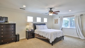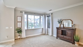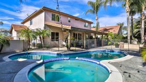 Step into this charming Menifee POOL HOME! As you enter you are greeted by a large open floor plan spanning 2,886 square feet of living space with finished crown molding throughout, 4 bedrooms and 2.5 bathrooms. Remodeled kitchen features a spacious island with its own double basin sink, pleasing white kitchen cabinets that are complemented by subway tile backsplash, dark metal hardware and contemporary quartz countertops with stainless steel appliances that complete the look. The family room area features a stone finished fireplace, large windows that offer plenty of light and views of the custom pool, backyard entertainment spaces, a powder bath and downstairs bedroom perfect for guests or a home office. The second floor includes a large entertainment sized loft. Primary bedroom with its own cozy fireplace, his and hers sink and closet space. Secondary bedrooms are finished in custom wooden wainscoting with access to a Jack and Jill bathroom, laundry room with upper/lower cabinets and complimentary granite countertops. The backyard is a residential oasis surrounded with matured palm trees, custom covered patio complete with lighting fixtures, built-in outdoor grill, and the pool/spa combo is finished with resort style blue tiles, a three-car garage with a large concrete side yard for possible RV access, and walking distance to La Ladera Park and commercial shopping centers just two miles away, and NO HOA.