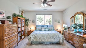 HIGHLY UPGRADED INVITATIONAL 2 MODEL HOME LOCATED IN PRESTIGIOUS 55+ FULLY GATED 24/7 SECURITY COMMUNITY OF FOUR SEASONS SURROUNDED BY HILLS AND HEMET GOLF COURSE. THIS LOVELY HOME IS JUST LOADED WITH AMENITIES BEAUTIFUL OPEN FLOOR PLAN WITH BUILT IN CABINETS AND BOOKSELVES IN GREAT ROOM CROWN MOLDING LOVELY LAMINATE FLOORS AND CARPET IN MASTER BEDROOM KITCHEN IS A DELIGHT WITH GRANITE AND ALMOST NEW APPLIANCES. 2 BEDROOMS 2 BATHS PLUS OFFICE/DEN INDOOR LAUNDRY ROOM. SPACIOUS 2 CAR GARAGE WITH GOLF CART PARKING. MAKE THIS HOME A MUST SEE. THE COMMUNITY OFFERS MANY ACTIVITIES AND HAS ITS OWN BISTRO WITH DELICIOUS MEALS. CALL TODAY