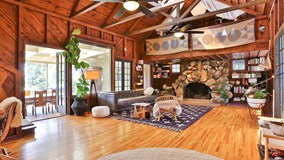 Character and pristine perfection in this historic handcrafted "Lynn Cludden" hunting lodge. Nestled under large deodars, this majestic home built of stone and shingles and wood craftsmanship. This is a unique beauty you won't want to miss. 17' open beam truss ceilings, French doors, and a massive stone fireplace are only a few of the nostalgic elements you'll appreciate as you enter the home. Cozy up in the daybed reading nook next to the fire. A unique and intriguing floorplan. Stone fireplace steps lead to the lofted third bedroom. Handcrafted wood banisters lead upstairs to two oversized bedrooms lined with wood windows drenching the space with sunlight. The formal dining room is currently used as the family room. An updated yet simplified light-filled kitchen has all the top appliances and simplicity of an era gone by. Year-round living is a must on the oversized outdoor porch with views of the Verdugo's. Overlooking a fantastic backyard. As the garden settles into Fall Spring blooms, surprise your inner gardener with 13 mature fruit trees, including; Meyer Lemon, grapefruit, 2 figs, 2 purple grapevines, mandarin orange, kumquat, avocado, pomegranate, orange, Santa Barbara peaches, nectarine, mulberry, apple and Mexican lime. Also, there is a vegetable garden with annual blueberries, blackberries, and artichoke. Meander the paths to multiple private sitting and play areas and enjoy a beautiful, heated pool and spa complete with dock style diving platform and shallow beach entry. Nighttime is a delight as tiny lights create a magical setting. Finally, don't miss the cheerful and versatile charm-filled carriage house perfect a guest cottage, home office, or both. Carriage house upgrades: flash water heater, up and downstairs wall heater, wall mounted ac and gas stove hook-up. Pool equipment is new, jacuzzi heater less than 1 year. Main house; Newer roof, new oversized CA unit, FA unit, and ductwork (Downstairs only) Almost all wiring has been replaced. A beautiful character filled home and property, truly one of a kind you won't want to miss on a quiet culdesac.