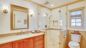 This home evokes the warmth of a European country inn with its sunny colors and beautiful wood flooring. The attention to detail is amazing; everything has been carefully thought out to make living here a pleasurable experience. Located on a quiet cul-de-sac, this traditionally styled home welcomes you with open arms. The shingle siding, balcony across the front of the house and used brick accents all add to the charm. Inside you will find an amazing kitchen loaded with style and function. The custom shaker cabinetry features inset drawers and doors and custom design elements. It is easy to see how this floor plan can help you create fond memories. The kitchen and family room are perfect for making dinners together, baking cookies, helping with homework or working from home, there is plenty of space. Hardwood flooring placed on a pleasing diagonal, traditional casement and double hung windows and Viking appliances are some of the upgraded details. The upstairs has been expanded and includes a spacious main bedroom overlooking the tranquil backyard. The large walk-in closet has been designed with built-ins to take advantage of the space. The en suite bathroom has been remodeled and thoughtfully designed. Three additional bedrooms upstairs are roomy and two of them open on to the front balcony with French doors. Need to take a quiet break? Head to the back yard which is designed in a European style and invites you to sit, relax and take in the view.