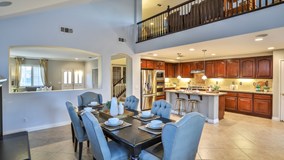 Check out this entertainer’s dream in Eastvale! It starts with great curb appeal with a blend of Mediterranean and craftsman influences. The French-door entry, high ceilings, and abundant natural light in the living room give a warm welcome, and the large upstairs family room/loft is perfect for a home theater, game room, or other hangout space. The warm welcome continues in the dining room with a gas fireplace and custom leaded-glass windows. The plantation shutters give a classy feel throughout the home. Cook up a great meal in the large kitchen with walk-in pantry and enjoy it at the breakfast bar, in the dining room, or out on the solid wood covered patio. You’ll love having so much room on the granite counters for prepping and serving food and storing your favorite kitchen gadgets. The primary bedroom features an en-suite bathroom with dual sinks and separate tub and shower. It also has a large walk-in closet with organizer kits already installed. A private sliding door from the primary bedroom to the back patio makes it easy to enjoy the pool and spa. Working from home? This home includes a bonus room perfect for a home office, gym, or studio. You’ll save a ton on energy costs with a lifetime Cool Wall coating from Tex-cote on the exterior (paid 13k), a 6.5-kilowatt solar power system that will be fully paid off at closing, a whole house fan, a smart thermostat, and a smart sprinkler controller and drip irrigation. A water heater booster and hot water circulator make hot water available sooner and longer. This home is also easily accessible with one small step in and out of the house at the garage, front door, and sliding doors to the back yard and only stairs to the family room inside the house. The 3-car garage offers tons of space for vehicles, storage, and projects. Cool off in the pebble-tech pool amidst the soothing waterfall sounds and relax in the spa after a long day. Watch the game on the patio TV while grilling on the built-in BBQ with rotisserie and smoker. On top of all that, this home has one of the largest lots in the neighborhood at nearly a quarter acre and is close to 4 wonderful parks and 2 schools. Costco and the Eastvale Gateway Shopping Center are also nearby. Top all this off with a long-lasting tile roof, and you’ve got a great home for a great life! Make sure you check out the video and 3D virtual tour as well! Welcome home!