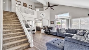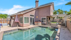Experience this updated 3-bedroom, 2.5-bathroom pool home! As you step inside, you'll be greeted by soaring vaulted ceilings, sleek new flooring and updated paint. Natural light pours in, highlighting the custom two-sided gas fireplace and smart Nest thermostat. The gourmet kitchen is a culinary dream, featuring onyx countertops, recessed lighting, and stainless steel appliances, including a pot filler. Upstairs, three generously sized bedrooms await (plus a downstairs bonus room), including a serene primary suite with a walk-in closet and spa-inspired en suite bathroom boasting a dual sink vanity and jetted soaker tub. Escape to your backyard oasis, where mature landscaping, palm trees, and a fire pit invite relaxation. Enjoy refreshing dips in the pool, equipped with a new pump. Additional features include a built-in BBQ, solar and an attached garage. Located in Country Gardens, you’ll love the community’s wide streets, larger lots, and well-kept surroundings, all of which create a peaceful atmosphere. With low taxes and an affordable HOA, this neighborhood is particularly appealing. You'll also enjoy convenient access to Temecula, Murrieta, freeways, shopping, and dining, plus Mt. San Jacinto College is within walking distance. Don't miss this incredible opportunity to make this amazing home yours!