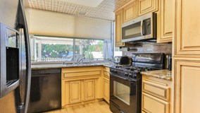 This lovely home is located on a quiet and established street. Upon entering you'll step right into the comfortable livingroom with cozy fireplace. The kitchen has been beautifully updated with stainless steel appliances. The built in aquarium provides peace and tranquility. The dining room is perfect for family gatherings. The master bedroom is generously sized with sliding glass doors that lead to the huge patio. There are his and her closets with mirrored wardrobe doors. The master bathroom has a jacuzzi tub with separate shower. There are also dual sinks and a nice vanity for getting ready in the morning. The hall bath has a custom steam shower with 9 shower heads and a built in bench. You will enjoy relaxing and unwinding here after a busy day. The bathroom has been gorgeously updated. There are beautiful wood floors throughout and each bedroom has a light and ceiling fan to keep the air circulating on those warm summer nights. The washer/dryer hook up is located in the garage where you will also find plenty of built in storage space. At the end of the day rejuvinate yourselves in the backyard watching your koi fish as they lazily swim back and forth in your 60 foot custom koi pond. There is also an expansive covered patio deck that stretches from one side of the house to the other. Your home will be everyone's place to meet for those summer BBQ's. You will love creating family memories in this wonderful home.