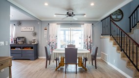 Dreams come true in this home located in Riverside. Your home has been freshly painted inside and out with dual pane windows. Your home features an open floor plan with a living room extending into the dining area and kitchen with picturesque views of your landscaped yard. Tile wood-like floors lead you through a spacious kitchen with an island ready for your next great meal. An updated half-bath is conveniently located on the main floor. Enter the backyard through two sliding glass doors open to your beautiful backyard with a large covered patio cooled by ceiling fans, a built-in bbq, fruit trees, and a private sparkling, heated pool and spa. As an additional bonus, there is an outdoor bathroom. Upstairs are three bedrooms plus a spacious loft. The primary bedroom features an en-suite primary bathroom. Another full bathroom is steps from the loft and the additional two bedrooms. Your home also includes an upgraded, energy-efficient A/C, ceiling fans throughout, and a mini-split A/C in the garage. The large concrete driveway and the two-car direct access garage allow plenty of parking and additional gated RV parking! A security mailbox is at the base of the driveway. Your cul-de-sac home is next door to all the great things the La Sierra South community offers: schools, eateries, shopping, and just minutes to major fwys. You do not want to miss out, so make us an offer we can't refuse!
