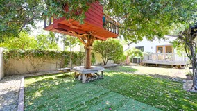 On a quaint tree lined street in storied Burbank lies this charming 3 Bed, 2 Bath home. A towering Chinese Elm shades the backyard & situated among it's branches lies a whimsical tree house with an actual elevator that brings out the 'Peter Pan' in all of us. As you enter, you're greeted by incredible airflow & natural light pouring in, new paint & refinished hardwood floors. The living area is adorned with coved ceilings, large front windows & base molding. Leading into the dining area w/ capacity for large gatherings under a stained glass pendant light. The kitchen is a great space to prepare meals while family & friends congregate. With granite top island & Fisher/Paykel gas stove top, Double Electric Ovens w/convection capability, circulating hot water system, Custom Cabinetry & a window that looks out to the backyard. Off the kitchen area is fitting for a breakfast nook or as another dining space with French doors that lead out to a newly built composite deck. Spacious master with en suite spa like bathroom complete with double sink vanity, Jacuzzi tub & separate shower with dual shower heads. Second bedroom is off the entry with a walk-in closet and a third bedroom with a charming dutch door that leads into the living area. A second full bath off the hallway with large subway tile backsplash, pedestal sink, hunter green walls with wainscotting & shelving for toiletries. Abundance of storage within the home & attic space. As you enter the quaint patio that leads to the back unit which is divided by three parts. One section is a dream for anyone who's looking for the ideal workshop. A separate room makes for a great flex space, accessible through the workshop and a separate exterior access. The laundry room makes up the third connection of the back unit (W/D connection & refrigerator). Back unit is perfect for potential ADU. Landscaping lush with bougainvillea, bird of paradise, jade, Jasmin, grape vines, Camila tree, peach tree & rose bushes. Custom seating wraps the elm tree & the tree house is equipped w/ Wifi, power hookup, elevator and ladder. Per Sellers - they are the 2nd owner on record, New roof in 2020. Home expanded in 2006 for adding a master bath, kitchen & family room. Copper Plumbing throughout, Soundproof Windows (through Burbank Airport Project). Close proximity to Burbank Adult School, Bret Harte Elementary & Luther Burbank Middle, Valley Skate park & Baseball field, along with some of Burbank's most iconic eateries, shopping and more!