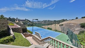 Proudly presents prestigious “The Country” estate. An extraordinary opportunity resides in a naturally secluded, European-inspired architectural custom estate with a modern contemporary interior. This hilltop estate countryside mansion offers 13,000 square feet of extraordinary living space with 7 bedrooms, and 11 bathrooms, including two master suites on the first level. Souring high ceiling with dramatic spiral double staircase. Gorgeous living room with fireplace entry to a private library with custom built-in cabinetry. A formal dining room with a coffered ceiling. A separate full-size wet bar. Generous family room space open to a state-of-the-art kitchen with top-of-the-line appliances, separate wok kitchen, and walk-in pantry. The second level features 4 suites with their own private bathroom and balcony. Enjoy the beautiful scenery of canyon view and city view through out the master suits with cozy sitting area and fireplace and beverage center. The master includes a walk-in deluxe steam shower and a Jacuzzi tub. Other features include a theater room, fitness room with a sauna, private meditation room, 950lb elevator, 6 garages with paved circular driveway and a custom Tennis court surrounding with 270° panoramic views.