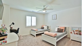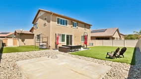 ~ Private Showing Appointment are available. Book your showings now. Just Text PSE to 59559 or go to www.RobertandChristy.com/Schedule to register.* Practically new 5 bedroom, 3 bathroom home in Menifee Hills Community with Solar. This gorgeous move in ready homes is located on a cul-de-sac and is fully landscaped front & back. The entryway opens to the expansive family room, kitchen and dining room. The open floor plan features recessed lights, luxury vinyl plank flooring, & plantation shutters throughout the space. The kitchen features walk-in pantry, stainless steel appliances, double oven and granite countertops as well as a large built in buffet. The dining area offers plenty of space for an 8 seat table or larger. The downstairs also features a spacious bedroom and full bathroom. Head up stairs to the large loft that offers enough space for a seating area and desk. The master bedroom is very large with a lighted ceiling fan and shutters with a equally spacious master bathroom with dual sinks, separate soaking tub & shower, and large walk in closet. The remaining 3 bedrooms feature carpet, shutters, & lighted ceiling fans and share a bathroom with dual sinks & privacy door to the toilet & tub & shower combo. The backyard is both low maintenance & low cost with artificial grass and hardscaping. The cement pad has power drawn to it ideal for your customization. The solar panels on this home save you tons of $$$. Ideally located close to shopping and the freeway and between Lake Elsinore & Diamond Valley lake for the adventurous homeowner. **Per State law and/or seller's requirements all showings require the buyer to sign a PEAD and provide proof of funds or pre-approval prior to all showings.**