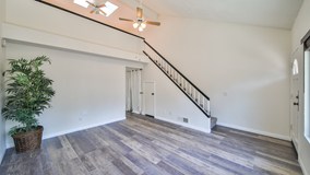 This upgraded condo offers you 2 bedroom and 2 full baths, with a bonus loft. 1 car detached garage. Inside laundry area with wash and dryer. The community offers two pools, and spa. The main pool is Olympic size, it’s also heated year round. There is a club house, with restroom and showers, BBQ area with tables and chairs. The upgrades include, new laminate flooring, new interior paint, newer vinyl double pane windows, with new blinds. New front door and screen door, new quartz countertop, with new sink and faucets, with garbage disposal. With the high vaulted ceiling, if give you a space of openness and lots of light. The bonus loft space is great office or play area. To schedule your appointment call Cindy McCormick at 714-396-5055