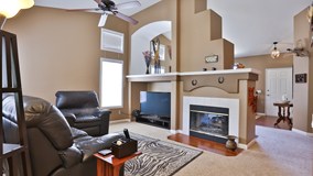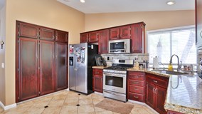 Single story 3 bed, 2 bath home in Mountain Gate w/3 car garage. This move-in ready homes features beautiful landscaping, semi-private front patio, & newer exterior paint. Step into the entry way that features laminate flooring to the formal living room w/2 way fireplace, vaulted ceilings, & open floor plan opening to the dining room. The dining room is spacious & conveniently located just off the kitchen. The family room features a fireplace, high ceilings, & ceiling fan. The kitchen is gorgeous w/details such as beautiful rich cabinets w/a huge pantry that is accented by the tile flooring w/custom diamond tile inlays. Granite countertops, recessed lighting, & tiled backsplash compliment the kitchen which opens to an informal eating area w/direct access to the private backyard. The master bedroom also has vaulted ceilings, lighted ceiling fan, large mirrored closet doors that reflect the light from the windows & an inset wall that provides more space. The master bath has dual sinks, separate shower & tub, toilet closet, & 2nd closet. The remaining 2 bedrooms are spacious & feature laminate flooring, wainscoting, custom paint, & ceiling fans & share the 2nd bath. The indoor laundry room features cabinets for storage. The large backyard is private w/brick inlayed covered patio, private spa, lush landscaping w/raised flower beds, vinyl fences & peek-a-boo views of the Cleveland National Forest. Located walking distance to hiking trails, schools, shopping & fwy access.