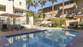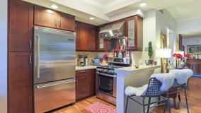 Welcome to this full service, luxury residence at Granite Park Place. Offering private concierge, valet parking services, club room with catering kitchen, fitness center, heated pool and spa, outdoor gas fireplace and two Viking gas grills to cook poolside, it's all just steps from the unit. Located in Pasadena's highly desirable South Lake District, this two story, spacious studio style unit has two private entrances. One located directly off San Pasqual St. and the other through the main lobby entrance for private guests. Enjoy evening dining and morning coffee on the spacious second floor balcony with north facing mountain views. The first floor boasts french doors out to a very spacious private patio, surrounded by foliage and flowers. Cook in the chef's dream kitchen with beautiful Viking and LG appliances, pearl quartz countertops, solid wood cabinets and hardwood floors by Kahrs. Both elegant baths offer spa like tile and Kohler fixtures.