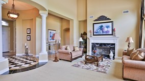 Beautiful Classical French Country single-story model home with city lights and Cleveland National Forest views! In the prestigious gated community of Crown Ranch Estates, surrounded by million-dollar homes, distinguished schools, minutes from newly built Dos Lagos (2 Lakes) shops, fine dining, award winning golf course, movie theaters and other attractions to entertain. This residence features a grand foyer with custom medallion marble inlays and European Doric columns. Spacious separate office with double doors, luxurious living room with marble fireplace and formal dining room, family room with stone fireplace/hearth. Gourmet kitchen with black marble counter-top, island, built-in appliances, and breakfast nook. Grand master bedroom suite with marble fireplace, shower, tub, and custom tile inlays. 3 secondary bedrooms, 3.5 bathrooms with designer tile, and teen room. The outdoors is perfect for entertaining! Over ½ acre of flat usable land and manicured landscaping, matured trees providing shade, ample grass/lawn, custom concrete walkways, patio cover, and AMAZING city lights to enjoy!