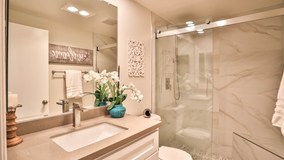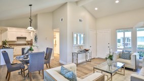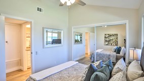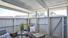 This lovely single story attached home in the 55+ Oceana community features tons of upgrades including a tastefully updated kitchen, gorgeous re-done bathroom, recently installed dual pane windows and a versatile flex-space room not included in the total square footage. As you enter you’ll be greeted by luxury vinyl plank flooring, designer paint and cathedral ceilings with recessed LED lighting. The kitchen has sparkling quartz countertops, single basin stainless steel sink, easy-clean cooktop & convection oven. The bathroom has soft-close cabinetry, quartz counters, walk-in shower with rain showerhead & hand-shower and a bench. The flex space is perfect for an activity room, office or space for guests. Washer/dryer and extra storage will be found in here as well. Along with access to your private patio with space for a small garden. Detached 1 car garage with new roll-up garage door. Amenities include HOA paid Cox Cable basic service, clubhouse, full kitchen, library, card room, computer room and heated pool & spa. There is also RV parking for a monthly fee. All right next to the Emerald Isle Golf Course where owners receive a discount. This home is unique as you own the land beneath your unit, the HOA amenities are on leased land and this unit has a fixed $15/mo rate, unlike many other units. The HOA for this one is $419.52/mo and most other units are in the $500’s. These type of units are in higher demand and go quickly.