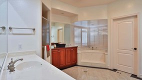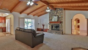 Welcome to this beautiful custom 4 bedroom 3 bathroom pool home located at the end of a quiet cul-de-sac. Over 3/4 of an acre, automatic gates welcome you to a circular driveway graced by a fountain feature and lion statues guarding the door. The grand entry welcomes you with a stunning crystal chandelier and decorative granite tile flooring. Straight ahead is a lovely formal living room with fireplace and crystal chandelier. The north wing of the home features a bedroom, bathroom, laundry room. A large family room welcomes you with wood ceilings and a gorgeous rock fireplace new carpet. The kitchen is adorned with cherry wood cabinetry, stainless steel appliances, and granite countertops. Off the kitchen is a large walk-in pantry and formal dining room also adorned with a 3rd crystal chandelier all of which were imported. The South wing of the home has three large bedrooms including the master with private exit to the backyard. Both the hall and master bath have large soaking tubs and double sinks. A landscaped backyard with room to move. Multi level concrete with a lounging area. Concrete pad for basketball, Built-in BBQ, fire pit, fruit trees, in ground Pool and Spa great space to entertain. A large three car garage with lots of storage cabinets, houses a central vacuum system to finish this off this great home. All the bedrooms have ceiling fans and all windows and sliders have plantation shutters. New paint throughout the interior. Make this a must-see.