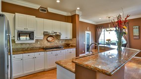 Shelter-in-place will have a different meaning in this grand guard-gated Stone Ridge estate. Imagine sipping a cool drink in your pool & spa while enjoying DIRECT LAKE & SUNSET VIEWS. How about grilling on your built-in BBQ next to the handmade palapa & savoring your dinner alfresco by the outdoor fireplace while gazing out on the twinkling lights below. This layout rarely hits the market & is highly sought after as it has SWEEPING DUAL STAIRCASES & a stunning crystal chandelier. Sprawling great room with double-height ceilings that are flooded with natural light. Gather effortlessly for meals around the island top bar in the spacious kitchen, featuring granite counters & adjoining breakfast nook, or take it into the formal dining & living rooms. Both entertaining areas downstairs have their own fireplace. DOWNSTAIRS BEDROOM & EN SUITE BATHROOM. Separate downstairs powder room. 5 total bedrooms & a HUGE BONUS ROOM ensure plenty of space for everyone. The generous master suite feels like a personal haven with UNOBSTRUCTED LAKE & ROLLING HILLS VISTAS. Decadent crown molding. Outside, lush tropical landscaping compliments the FRESHLY PAINTED Spanish elevation. Plus, walking distance from the playground & hiking trails. Mission Viejo offers fantastic amenities, including Lake Mission Viejo where you will enjoy boating, picnicking & movie/concert nights under the stars.