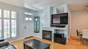MUST SEE VIDEO TOUR. Beautiful home in highly sought-after Summit Renaissance, gated community, resort living with pool, spa & gym. LOADED WITH RECENT UPGRADES: remodeled kitchen, Trane XR air conditioning, Anlin low-E windows w/ transferable warranty, plantation shutters, fresh paint throughout, garage door & opener. Open concept, with then entire living area on a single level. Carriage style with laundry room and direct-access two car tandem garage below. Spacious living room opens to the gorgeous kitchen, dining area & front porch area making it the perfect space to entertain. Living room features a cozy gas fireplace. This dreamy kitchen has top-of-the-line cabinetry w/ smooth closing drawers & doors, designer tile backsplash, quartz countertops w/ breakfast bar, tile flooring, upgraded stainless steel appliances and under-mounted single basin sink. Down the hall you will find the private master suite with dual vanities. Both bedrooms feature upgraded flooring and newer remote-controlled ceiling fans. The front porch offers a built-in BBQ with room for a seating area and some potted plants. Very well-maintained community with a low HOA that includes water, trash, exterior maintenance and landscaping. Minutes from award-winning schools, Savi Ranch Shopping, restaurants, movies, golf courses, parks, hiking and easy access to 241 Toll Rd, 91/55 Fwys.