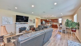 UPGRADED Sundance North home with all the "extras"!!! Check out this open concept 2 year new home built by Pardee Homes. This home features builder upgrades to include granite back splash all the way up in the kitchen, Christmas light package with clips and switch inside the garage, raingutters and downspouts and custom laminate floors THROUGHOUT the ground floor! Owner has also had an allumawood patio cover put in that shades the entire kitchen and family room in the back of the house. This corner lot will impress you, and the rear yard is completely flat and usable, offering the perfect combo of grass, and patio. The yard is big enough for a personal pool - however, the location of this home is directly across from the community pool and is in such a pristine location, you will feel as if you have the community pool in your front yard. This home has several amazing features such as a downstairs bedroom and 3/4 bath, perfect for a guest or in law area as well as a HUGE master suite with separate tub/shower and HUGE walk in closet. Enjoy all that this community boasts with 3 community pool/spas , sports courts and playground/tot lot areas. This home is sure to please. Check it out today!