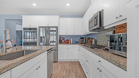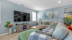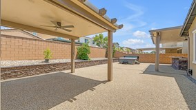 Built in 2020, this highly upgraded Lennar home is the best on the block with over $150,000 in upgrades ! This south facing home really does have it all! The front features a beautiful craftsman style porch, Professional mature landscaping, Turf and Lighting. Upon entering the home you'll walk into a formal entry with upgraded wood-look tile flooring. There is a flex room(bonus room) which could be used as a kids playroom, an office, 5th bedroom or a gym. A bedroom and full bathroom are downstairs as well. You have an open concept kitchen and family room with plenty of space for family and entertaining. Kitchen features granite countertops, a spacious island, breakfast bar area , an array of white thermofoil cabinets, and stainless steel appliances that includes a double oven. There is a separate dining room that could also be used as a bonus room. Upstairs has 3 spacious rooms including the master bedroom with 2 walk in closets and a huge master bathroom with a separate vanity, double sink, and upgraded quartz countertops. But wait, there's more...Natural light is not an issue with the amount of windows, all with custom plantation shutters. The owners have meticulously designed the backyard which includes custom pebble stone throughout the patio. A rustic retaining wall with custom stack stone finish housing trees with custom lighting on wall and up-lights on trees. The city permitted patio cover and pavilion was designed with an insulated cover and structurally sound posts. The sandalwood and sienna wood color match the home perfectly and also includes a ceiling fan, and recessed lightings. The yard would not be complete without the professionally installed outdoor kitchen and bar and overlook the hot-tub. This home is also energy efficient with 11 solar panels and a tankless water heater. Lastly, a tandem 3 car garage with that has also be upgraded with epoxy flooring and built in storage. This extremely functional home is perfect for todays family!