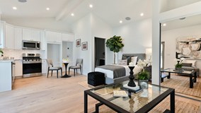 Sophisticated 1-Story Spanish style home in Prime Picfair Village! 3 beds - 3 baths in 1600 SF main house. Additional 373 SF in fully approved & permitted ADU w/ own address .Open concept kitchen with Island facing dining and living room,. Kitchen features Stainless steel appliances, wine cooler, quartz countertops, white shaker cabinets & seating for 4 at the kitchen bar. Formal living room w/ Pitched ceilings. New gas burning fireplace, large dining room which opens to kitchen, Home is completely renovated includes new 200-amp panel and separate electric meter or the ADU. Custom design landscape. Built-in speakers, EV charger ready, EQ bolting & tankless water heaters, central HVAC & copper plumbing. Separate laundry room w/side by side full-size washer/dryer. Master Bedroom suite w/ custom built-ins. Master bath boasts a beautifully tiled walk-in shower & large soaking bathtub. LED recessed lighting in throughout the house. Lush backyard w uniquely designed side yard/ plenty of room to run & play. Expansive outdoor dining area , large grassy yard for playing and completely hedged front yard with custom gates. New Security alarm system, Ring cameras, Media closet, Skylight, designer bathrooms tile and vanities. Dining room with French doors leading to your hedged front yard. Back bedrooms with French doors leading to the backyard. ADU with pitched ceilings, custom design bathroom, full size kitchen with dishwasher, gas stove, fridge and stackable washer and dryer. ADU can be rented legally for additional income. Fresh remodel and just got certificate of occupancy.