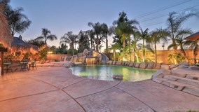RESORT-STYLE PARADISE IN THE HEART OF EASTVALE! Stunning 3-level home with 4 bedrooms, 5 full baths, and an unmatched backyard oasis—rock pool with waterfalls, slide, grotto, Baja shelf, 12-person spa, palapa bar with BBQ & kitchen, covered patio with TVs, sound system & fire pit! Upgrades include crown molding, new carpet, plantation shutters, and custom built-ins. First floor features a game room (tables included!) and a glass-enclosed office/optional 5th bedroom. Gourmet kitchen with Caesarstone counters, stainless appliances, and double oven. Upper levels offer multiple bedrooms, lofts, and a private third-level suite. Enjoy a 3-car tandem garage with epoxy flooring, built-ins & fridge, plus a separate 4th garage. Security system w/ cameras included! Don’t miss this one-of-a-kind entertainer’s dream!