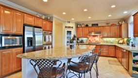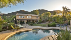 OWN YOUR OWN RESORT AT THE TOP OF EAGLE GLEN. HARD TO FIND FIRST TIME ON THE MARKET ON ALMOST A HALF ACRE. WALK UP TO THE OVERSIZED 8 FT DOUBLE DOOR ENTRY & ENTER TO THE OPEN 18 FOOT VAULTED CEILINGS WITH GORGEOUS WROUGHT IRON FRONT STAIRCASE TRIMMED WITH MAPLE. CUSTOM AND AMAZING CHANDELIERS, PLANTATION SHUTTERS & THE 20 X 20 PORCELAIN TILE WITH MARBLE MOSIAC INSERT. THE FORMAL DINING ROOM BOASTS COFFERED CEILING AND THE ENTIRE HOME HAS CROWN MOULDING, 5" BASE BOARDS, CUSTOM WINDOW SILLS. THE BACK STAIRS & THEATRE ROOM HAVE TOP OF THE LINE MASLAND CARPET. GOURMET KITCHEN FEATURES A DOUBLE OG EDGE WITH SINK IN ISLAND AND BREAKFAST BAR. STAINLESS STEEL VIKING APPLIANCES AND TRASH COMPACTOR. THE CUSTOM BACK SPLASH IS OF THE ALMAFI COAST, DOUBLE CONVECTION OVENS, THE LAUNDRY IS GALLEY STYLE WITH SINK AND LOTS OF CABINETS. DOWNSTAIRS LARGE BEDROOM WITH MIRRORED WARDROBES AND IT'S OWN FULL BATH. DOWNSTAIRS HAS A LARGE OFFICE. THE MOVIE THEATRE ROOM HAS CUSTOM EMBOSSED CEILING FROM THE HOLLYWOOD WAX MUSEUM & THE FRONT BEDROOM SUITE HAS A PRIVATE BATH & 2 BALCONIES. THE MASTER BEDROOM IS VERY LARGE WITH 180 DEGREE CITY LIGHT VIEWS TO DIE FOR. MASTER BATH ALL DONE IN CREAM MARBLE WITH MOSAIC INSERT. PROFFESSIONALLY DESIGNED PRIVATE BACKYARD MUST BE SEEN! PATIO COVER ON 4 LARGE CONCRETE COLUMNS, CRISS CROSS LAWN, FOUNTAIN, PEBBLE TEC POOL/SPA, BUILT IN FIREPLACE/ DCS BBQ WITH DROP IN COOLER/FRIDGE, WATER FALL/ POND WITH LILLY PADS/BRIDGE STAMPED COLORED DECK, & STREET LAMPS.