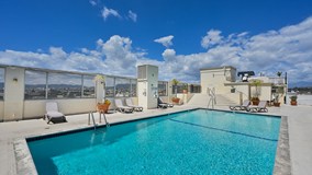 Come marvel at the sheer size of this beautiful unit. Large and airy, this property features a well equipped kitchen, fireplace, low-maintenance tile floors, custom shutters, two primary suites with full bathrooms, and a den. Others have converted the den to a third bedroom. You, however, get to choose your own adventure! Enjoy the peekaboo views of DTLA from your balcony and bedrooms or choose to be astonished by the views on the often very private rooftop pool deck. This unit is just in time for summer! Gym, pool, views...with this unit 2022 is going to be the best year yet!