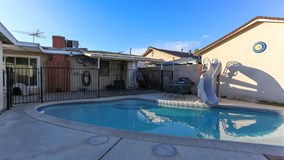 Down-payment assistance available! Text DPA to 626-328-4199 for info on how to buy this home with 0.5% out of pocket. Come check out this sweet, mid-century pool home on a cul-de-sac! Step into the updated kitchen, and you'll find Oak cabinets, granite counters and backsplash, and tile flooring along with a breakfast nook and extended cabinets and counter top that offer extra prep and storage space. Hardwood floors throughout provide a warm, inviting ambiance. You'll love how this floor plan delivers both a living room and a separate family room with a cozy fireplace for relaxing after a long day. The master bedroom has its own private, remodeled, en-suite bathroom, and there is a second full bathroom for family and guests. You'll also love the tons of energy-saving upgrades, including new solar panels, insulation, electrical panel, and LED lighting installed in 2015. Central heating and A/C will keep you comfortable all year long. Cool off on hot summer days in the sparkling pool, and chill in the shade of the covered patio. The long driveway is perfect for parking multiple cars, an RV, or a boat. Appollo Park, Imperial Elementray, and Sussman Middle School are all within a mile of home along with Walmart Neighborhood Market and a variety of other stores and restaurants. Welcome home!