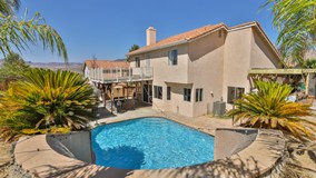 Nestled in East Hemet area, this exquisite pool home is located at the end of a cul-de-sac. As you step through the front door, you'll be welcomed by a spacious formal living and dining room, boasting high ceilings that create an airy and inviting atmosphere. The open kitchen is equipped with modern appliances including a stove, microwave, dishwasher, and fridge. It seamlessly flows into the cozy family room, where a gas fireplace adds warmth and charm. A convenient half bath is also located on the main floor. Ascending the wide staircase, you'll find the expansive main bedroom featuring two walk-in closets, along with three additional bedrooms. One of these bedrooms offers access to a large outdoor deck, perfect for sunbathing or enjoying breathtaking sunsets. The backyard is an entertainer's paradise, featuring a covered patio, a large pool with two waterfalls, and two Tiki bars. The side yard provides ample space for parking your RV, boat, and other recreational toys. No Homeowners Association to worry about. Don't miss this opportunity to own a beautiful home in a prime location.