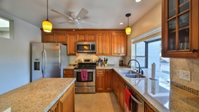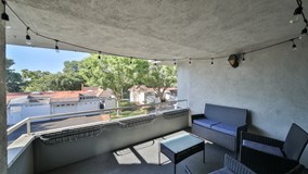 Move-in ready upgraded Santa Barbara model in the highly desirable Laguna Village resort community. This floor plan feels spacious with open living room & dining area with slider to large balcony with views. Beautiful 3 BR, 2 BA boasts remodeled & reconfigured Chef's kitchen w/custom solid Maple cabinets, granite counters, stainless sink & appliances. Bay window w/views of hills. Features newer windows and sliders throughout. Central A/C, porcelain tile in entry, kitchen, dining & baths. This unit has vinyl fencing along the back with access from Master Bedroom. Bathrooms have been remodeled! Oversized 2 car garage + huge "cave" storage/workshop. 2 pools, spa, workout room, clubhouse, BBQ area, playground, volleyball, tennis, basketball. Close to freeways, beach, spectrum & parks.