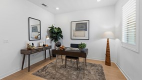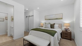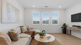 Experience modern luxury in this stunning 2023-built townhome in the prestigious Oasis community of Rienda. The thoughtfully designed floor plan features a main-level flex space adjacent to a convenient half-bathroom and the laundry area, creating the perfect setup for a high-end home office or creative studio. The interior radiates a model-home aesthetic with waterproof luxury vinyl tile flooring, designer plantation shutters, and a gourmet kitchen anchored by white shaker cabinetry, quartz countertops, and stainless steel appliances (refrigerator included). The washer and dryer are also included for ultimate move-in convenience. It also has solar ($102 per mo.). Relax on your private front patio with breathtaking views before heading out to enjoy the unparalleled Rancho Mission Viejo lifestyle. You are just steps away from the brand-new Boulder Pond for catch-and-release fishing and its modern playground, as well as the exclusive Oasis adult pool and adjacent state-of-the-art gym. With Ranch Camp’s beach-entry lagoon pool and outdoor BBQ areas nearby, this home offers a seamless blend of sophisticated design and active, resort-style living.